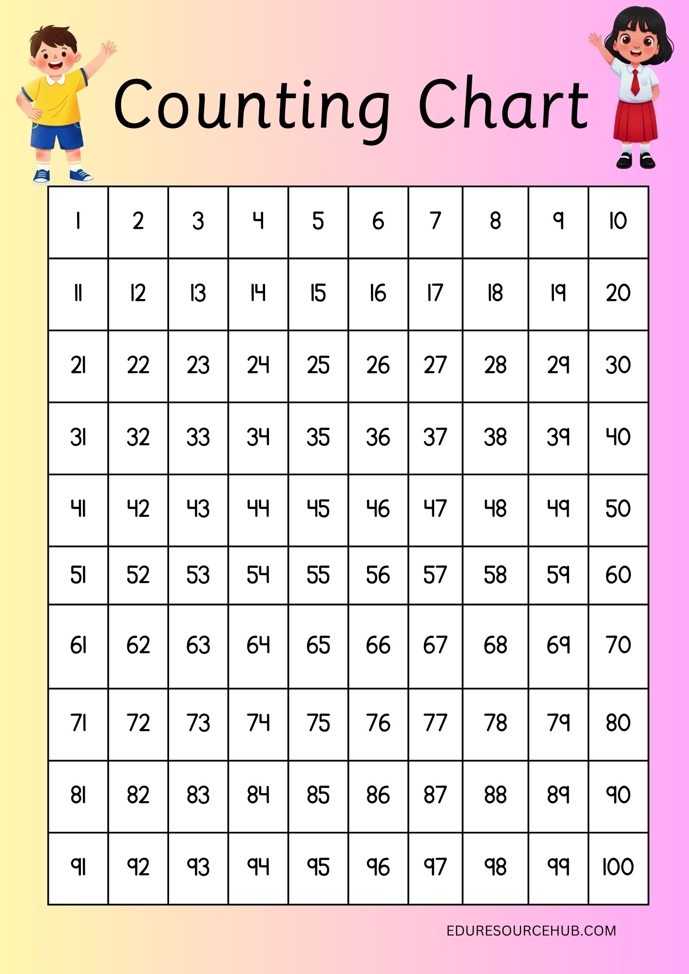 Counting 1–100 & Counting in 5s is a visually engaging classroom resource designed to support early mathematical learning. This bright and easy-to-read chart helps learners practise counting from 1 to 100 while also introducing skip counting in 5s. It supports number recognition, number sequencing, and the development of strong numeracy foundations.